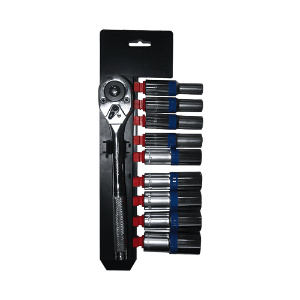 In 10PCs Hand Coegi Panis Set (1/2 ") Est versatile et durabile Toolkit disposito utriusque professional mechanicis et DIY Enthusiasts. Featuring a 1/2” drive ratchet handle and nine deep sockets in sizes 10, 12, 13, 14, 17, 19, 21, 22, and 24mm, this socket set provides the essential tools needed for a wide range of automotive, mechanical, and home maintenance tasks. Its ergonomic design, high-quality materials, and comprehensive selection make it an indispensable addition to any toolbox.